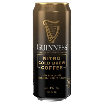 Guinness Nitro Cold Brewed Coffee has an alcohol content of 4 by volume and I paid 759 for a 4-pack of 149 ounce cans at Target. Go to httpswestcorkbeardcompanyie and use code GURU for 10 off. Its their Guinness Cold Brew Coffee Beer.